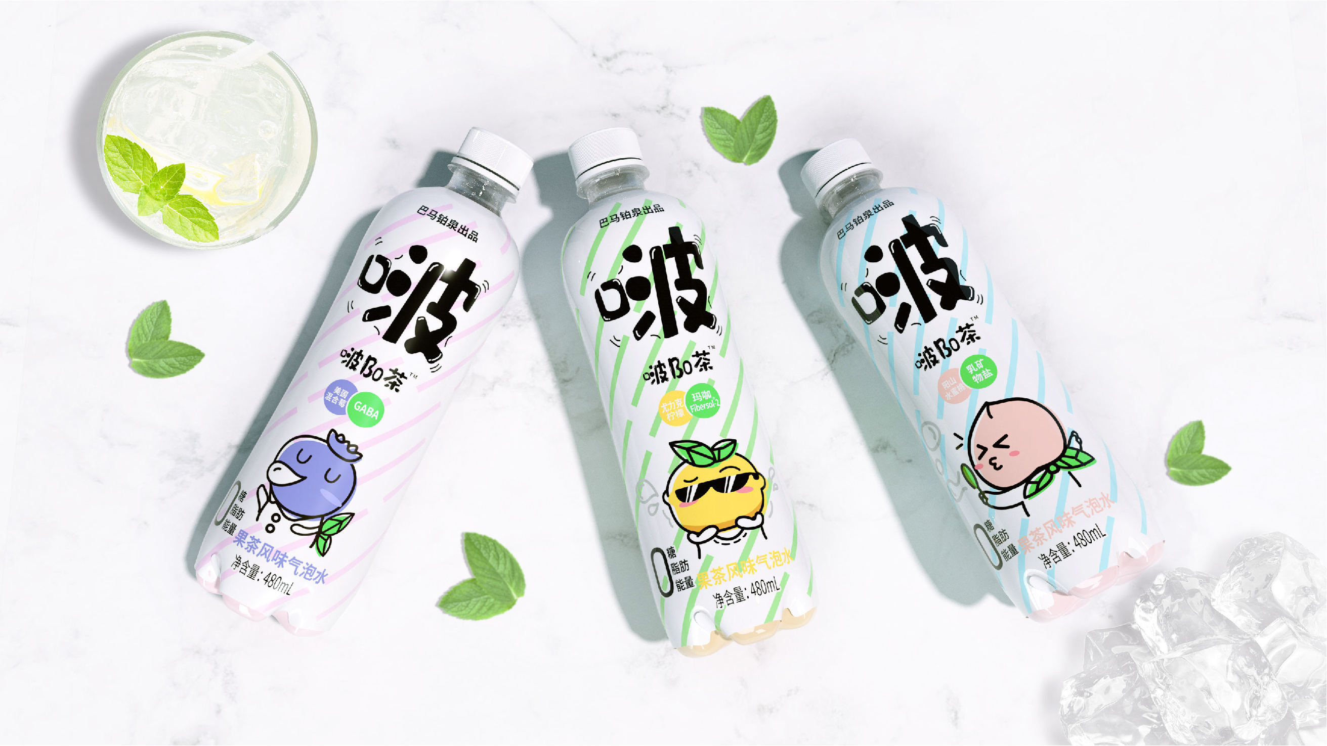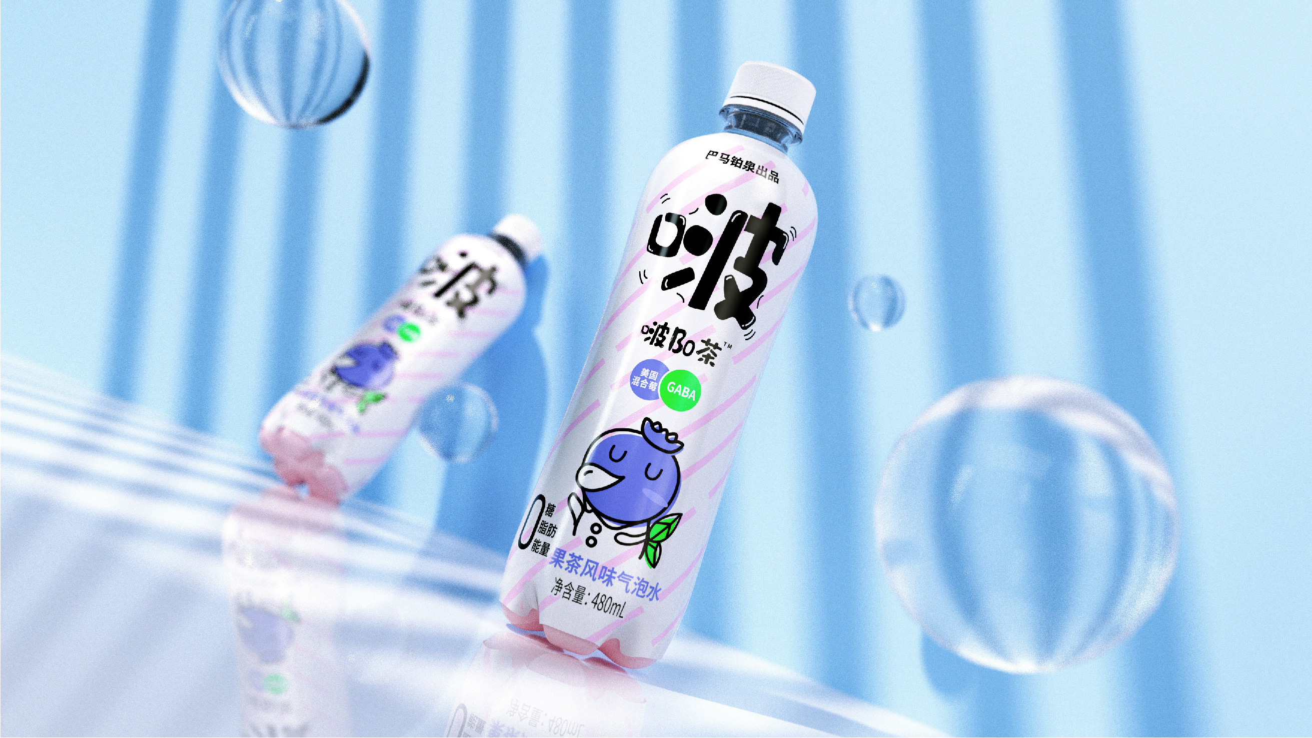 巴马铂泉丨啵Bo茶气泡水饮料包装设计丨瓶型设计丨logo